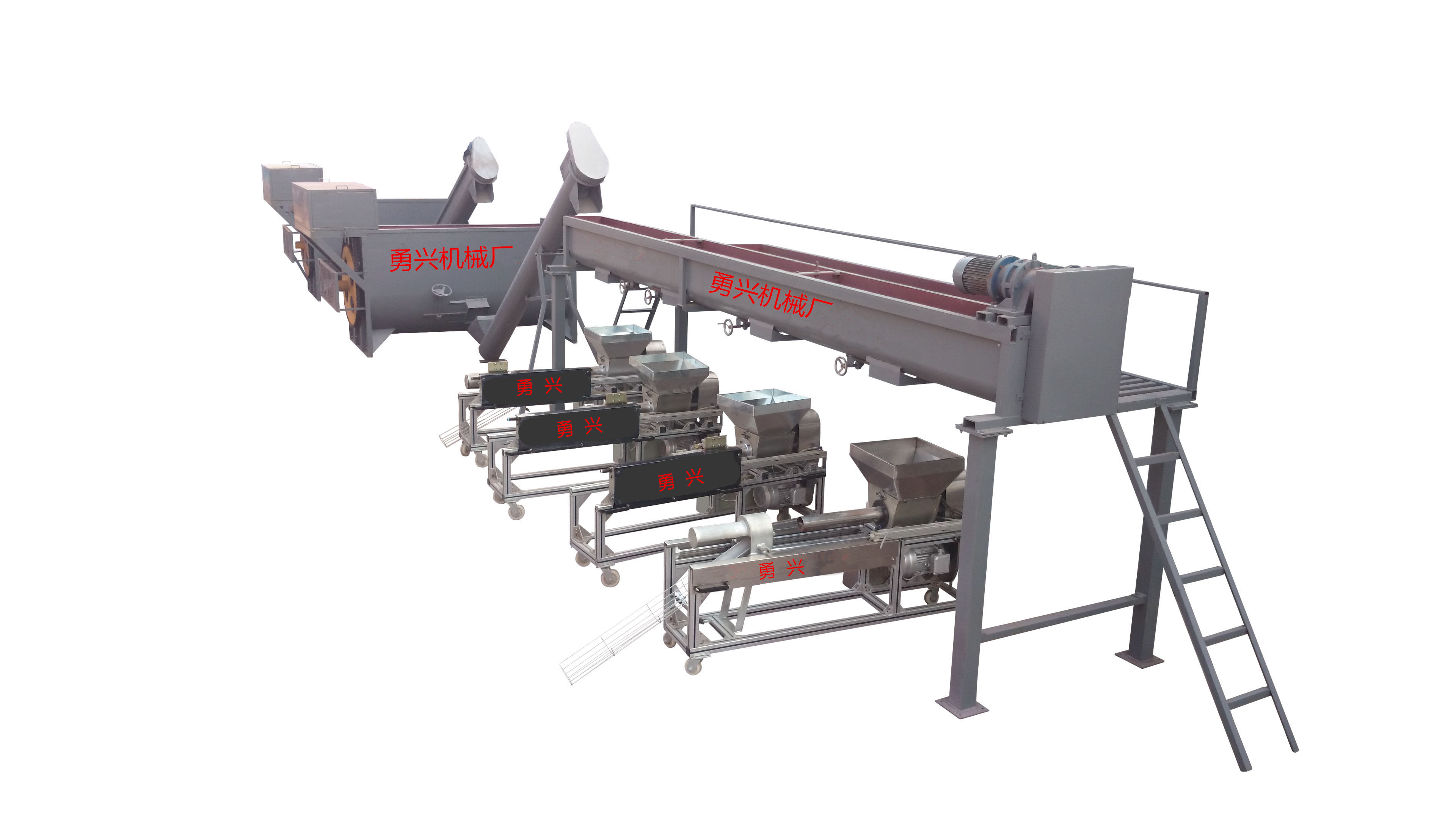 近年來(lái)食用菌的發(fā)展,越來(lái)越迅猛。其規(guī)模不斷擴(kuò)大,品種不斷增多,地域限制越來(lái)越少。是農(nóng)民增收的可靠保障,也是地方政府的經(jīng)濟(jì)支柱。 本廠特別研發(fā)生產(chǎn)的中小型食用菌工廠化生產(chǎn)流水線(xiàn),占地省、效率高、價(jià)格優(yōu)、節(jié)約人力,全套機(jī)組只需三到四人,即可實(shí)現(xiàn)日產(chǎn)一萬(wàn)袋的規(guī)模,廣泛用在香菇、木耳、平菇、金針菇、茯苓 、灰樹(shù)花、姬菇、秀珍菇....等食用菌種植領(lǐng)域 。是工廠、基地、合作社、家庭農(nóng)場(chǎng)理想的工廠化生產(chǎn)機(jī)械。 本機(jī)標(biāo)配二級(jí)拌料,二級(jí)上料,一級(jí)全自動(dòng)高速裝袋機(jī),一臺(tái)空氣壓縮機(jī),一臺(tái)自動(dòng)扎口設(shè)備。 如何挑選合適的流水線(xiàn)設(shè)備呢? 食用菌生產(chǎn)出菇有其特殊性,有一年一出的、一年兩出的、一年數(shù)出的,所以,既要根據(jù)全年生產(chǎn)計(jì)劃,又要根據(jù)單季產(chǎn)量選擇。凡單季產(chǎn)量40萬(wàn)袋內(nèi)的,可選單機(jī)生產(chǎn)線(xiàn)。單季產(chǎn)量80萬(wàn)袋的,要選雙機(jī)中型生產(chǎn)線(xiàn)。單季產(chǎn)量120萬(wàn)袋以上要選三機(jī)生產(chǎn)線(xiàn),超過(guò)150萬(wàn)袋的選四機(jī)或五機(jī)大型流水線(xiàn),配置超過(guò)五臺(tái)裝袋機(jī)以上的可考慮上兩條線(xiàn)。總之,計(jì)算產(chǎn)能時(shí),只能按生產(chǎn)線(xiàn)產(chǎn)能的80%來(lái)計(jì)算產(chǎn)出量。并且,在產(chǎn)前設(shè)計(jì)時(shí),要適度超前,留有余量,留有生產(chǎn)增長(zhǎng)的空間。假如這一季生產(chǎn)40萬(wàn)袋,下一季產(chǎn)出可能超過(guò)50萬(wàn),甚至更多時(shí),那么設(shè)計(jì)時(shí)就要考慮買(mǎi)大一級(jí)的流水線(xiàn)設(shè)備。 那么如何來(lái)選擇呢?我們知道品牌不同、設(shè)計(jì)不同、質(zhì)量工藝配置各不同,價(jià)格往往相差很多。但一條好的流水線(xiàn),應(yīng)該是設(shè)計(jì)合理、結(jié)構(gòu)緊湊、制作精良、操作簡(jiǎn)便。流水線(xiàn)設(shè)備主有攪拌設(shè)備、輸料設(shè)備、裝袋設(shè)備、扎口設(shè)備等幾部分組成。 一、應(yīng)用于流水線(xiàn)的攪拌設(shè)備,主要是廂槽式拌料機(jī),這種設(shè)計(jì)占地少、效率高、易于搭配。按照上料方式的不同,主要分為單槽式、液壓翻斗式、地埋式幾種。地埋式是主攪拌機(jī)埋入地下,與地面齊平或稍高,以利于將各種物料快速倒入拌料廂體中。液壓翻斗式是將配好的物料,通過(guò)專(zhuān)門(mén)的液壓上料機(jī)構(gòu),傾倒入廂體內(nèi)。而單槽式則適合用裝載機(jī)上料,利于大規(guī)模工廠化生產(chǎn)。如何選擇好的攪拌設(shè)備,以適應(yīng)高強(qiáng)度工廠化連續(xù)生產(chǎn),有幾點(diǎn)需要注意的地方: 攪拌機(jī)的結(jié)構(gòu)由廂體、螺旋攪拌機(jī)構(gòu)、減速機(jī)構(gòu) 、電機(jī)、電控五部分組成。其中廂體是攪拌機(jī)的主體,其中框架焊接要周正牢固,半圓形廂體要圓滑,其主軸中心點(diǎn)到底面各點(diǎn)距離要一致,否則攪拌不勻,容易卡機(jī)。鋼板國(guó)標(biāo) 4毫米以上,兩邊圍板則必須達(dá)到國(guó)標(biāo)6毫米以上。整個(gè)廂體焊接光潔周正、結(jié)構(gòu)合理。螺旋攪拌機(jī)構(gòu)的中心主軸,由加厚無(wú)縫鋼管制成。支柱由32毫米以上圓鋼支撐,外螺旋由20毫米加10毫米方形優(yōu)鋼制成,內(nèi)螺紋由厚8毫米以上鋼板組成,兩頭輔以加大的萬(wàn)向軸承支座。 減速機(jī)構(gòu)分為齒輪減速機(jī)、針線(xiàn)擺輪減速機(jī),行星減速機(jī),一般小型機(jī)采用齒輪減速機(jī),其扭力大,但體積也大。大型攪拌機(jī)采用針線(xiàn)摞輪減速機(jī),其扭力大、體積小。好的動(dòng)力機(jī)構(gòu),電機(jī)采用國(guó)標(biāo),其動(dòng)力充足、留有余地。 二、輸送機(jī)主要有刮板式、螺旋式、皮帶式等幾種,食用菌流水線(xiàn)原來(lái)多用刮板式,刮板式效果好,但噪音大,鏈條機(jī)構(gòu)復(fù)雜,且易生銹腐蝕,現(xiàn)在多不采用。圓管式輸送快,噪音低,但大物料容易卡機(jī),且維修保養(yǎng)較困難。半管螺旋式,速度快、噪音低、維護(hù)簡(jiǎn)便,是流水線(xiàn)輸送機(jī)發(fā)展的主要方向。其動(dòng)力機(jī)構(gòu)應(yīng)采用國(guó)標(biāo)大功率變速電機(jī),直接連接驅(qū)動(dòng)螺旋主軸。而不應(yīng)該采用簡(jiǎn)易電機(jī),通過(guò)各種皮帶輪變速連接。 三、裝袋機(jī)是裝袋流水線(xiàn)的關(guān)鍵,它的質(zhì)量?jī)?yōu)劣、設(shè)計(jì)好壞,直接影響到裝袋效果。 裝袋機(jī)按裝袋方式分為立式、臥式、立臥式結(jié)合成等幾種,按進(jìn)料方式分為螺旋式和沖壓式幾種,按離合方式分為機(jī)械離合式和電磁離合式,按裝袋效果分防爆袋式和不防爆式等幾種,按驅(qū)動(dòng)方式分為電動(dòng)和氣動(dòng)式等幾種。 氣動(dòng)式裝袋機(jī)噪音低,速度快、結(jié)構(gòu)相對(duì)簡(jiǎn)單,工廠化大都采用。電動(dòng)式裝袋機(jī),噪音大、結(jié)構(gòu)相對(duì)復(fù)雜,但維修相對(duì)簡(jiǎn)單一些。 四、扎口機(jī)是流水線(xiàn)裝袋的最后工序,適用于需要扎口的菌袋。按扎袋方式分為臥式和立式兩類(lèi),按操作方